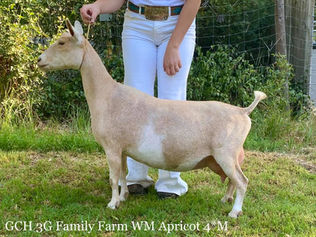 Birdie is a beautifully correct young doe. She stands on an ultra-correct set of feet and legs, open ribbing, FLAT in her bone, and has velvety soft and pliable skin. Her dam, Farmers Daughter is one of Drewems heaviest milkers. Birdie has proved to be extremely competitive in the junior doe show ring, finishing out her final show with 4x 1st place wins, and earning her Jr leg and a BIS win!
